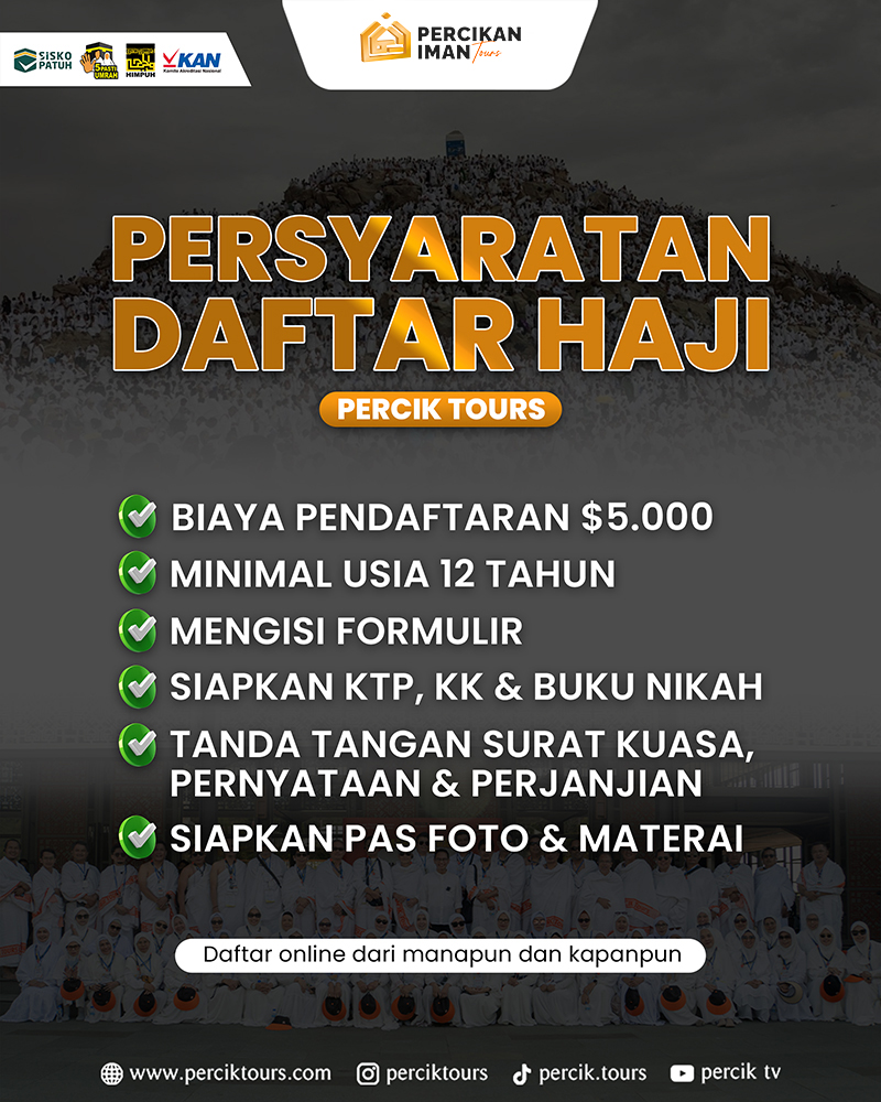 Syarat utama untuk umroh adalah Anda harus berstatus muslim, berakal sehat, dan baligh. Anda juga perlu menyiapkan dokumen seperti paspor yang masih berlaku minimal 6 bulan, visa umroh, serta bukti vaksinasi tertentu. Kami akan membantu Anda dalam proses persiapan dokumen ini.